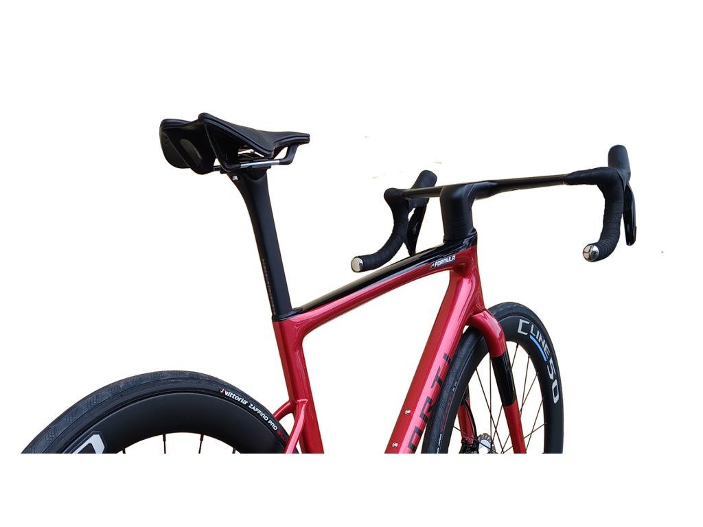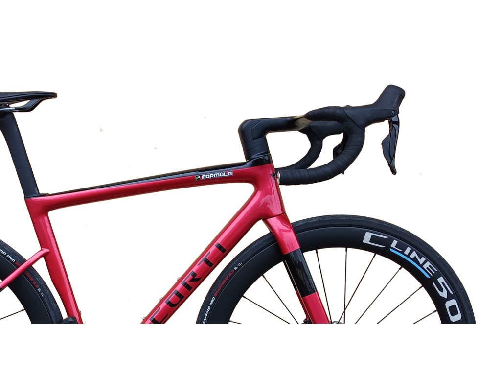 Cena rámové sady: 33.990,- Kč - rám FORMULA RS ve velikosti XS až XL, vidlice FORMULA CARBON PRO, sedlová trubka FORMULA Carbon Profile, hlavové složení, řidítka CORTI CARBON MOCOQUE)